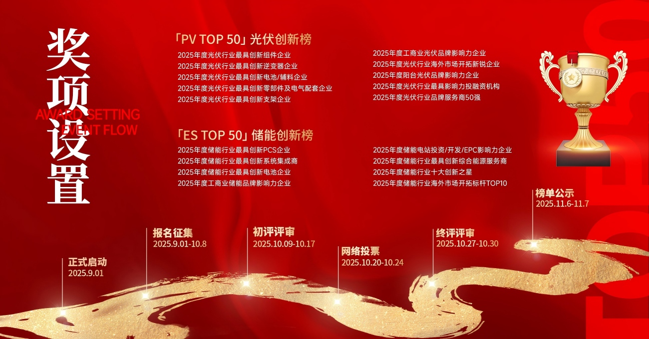 “「PV TOP 50」&「ES TOP 50」2025光儲創(chuàng)新榜”評選活動正式啟幕!